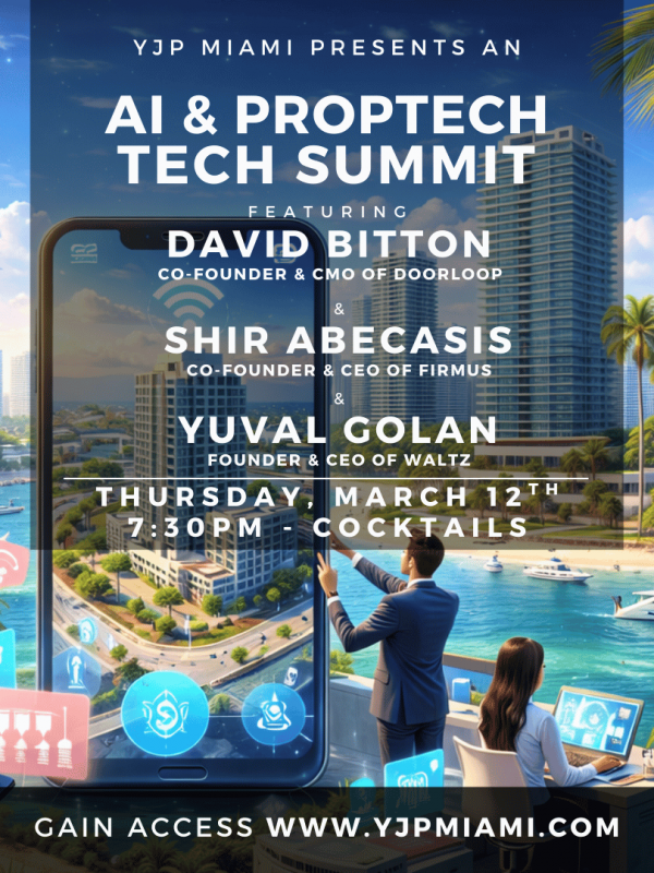 YJP AI & Proptech Tech Summit and Networking event on Thursday, March 12th, will bring together an impressive and powerful group of individuals and CEO’s. Meet and network with young professionals!